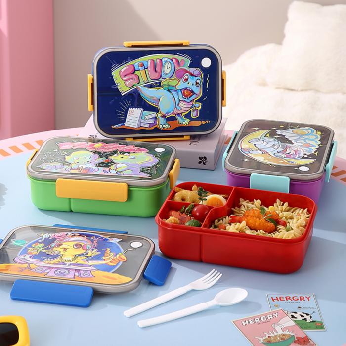 卡通實色蓋分格飯盒1450ml
