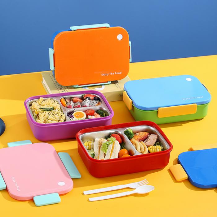 簡約不銹鋼分格飯盒(3分格/