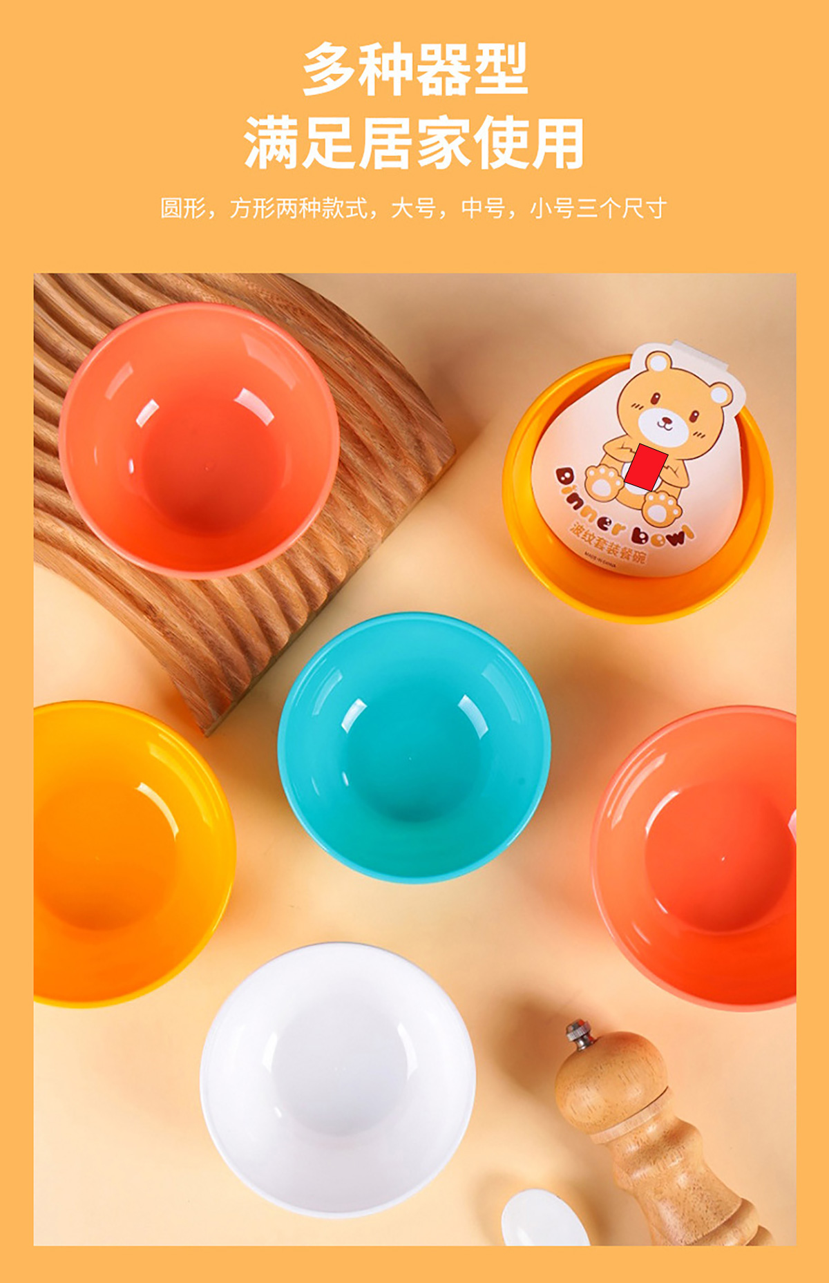 波紋圓形/方形餐碗 小號/中號/大號(4個裝)
