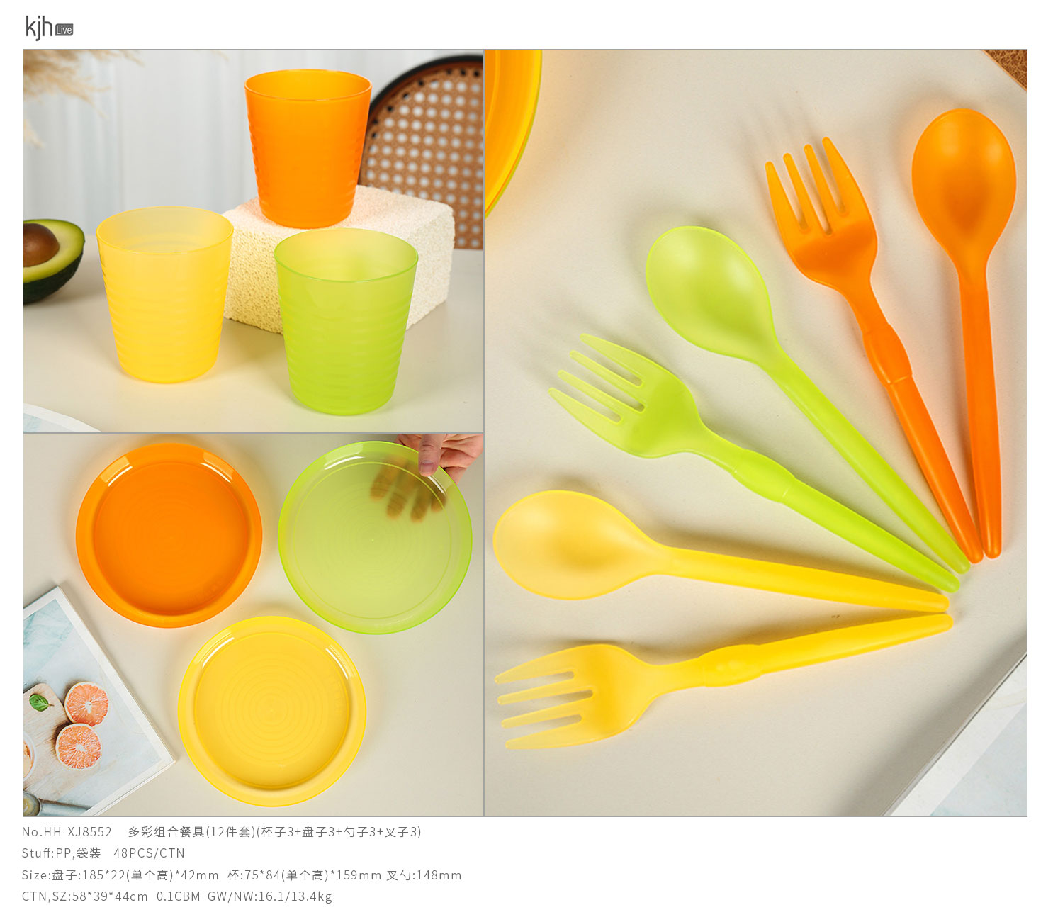 Size: 盤子:185*22(單個高)*42mm 杯:75*84(單個高)*159mm 叉勺:148mm