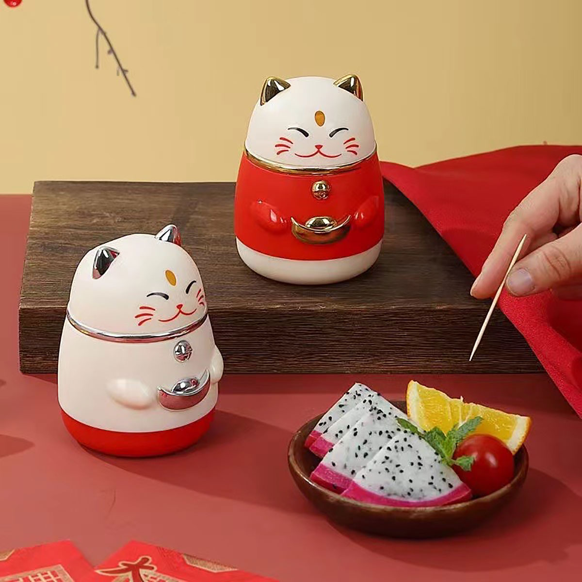 招財貓自動牙簽筒