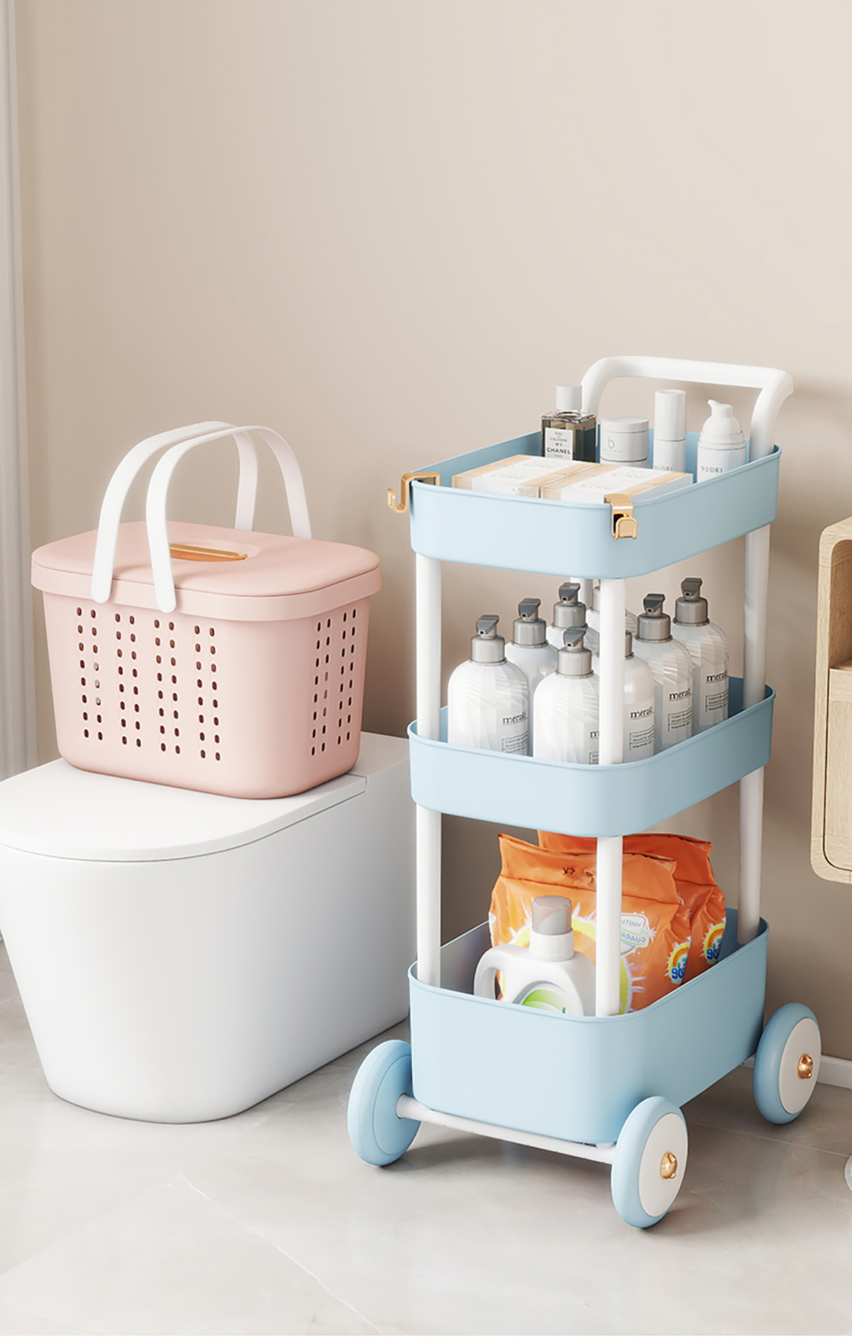 Size: HF-5801A(小提籃):460*330*310mm/內(nèi)格:430*290*130mm HF-5804B(小推車):380*500*850mm