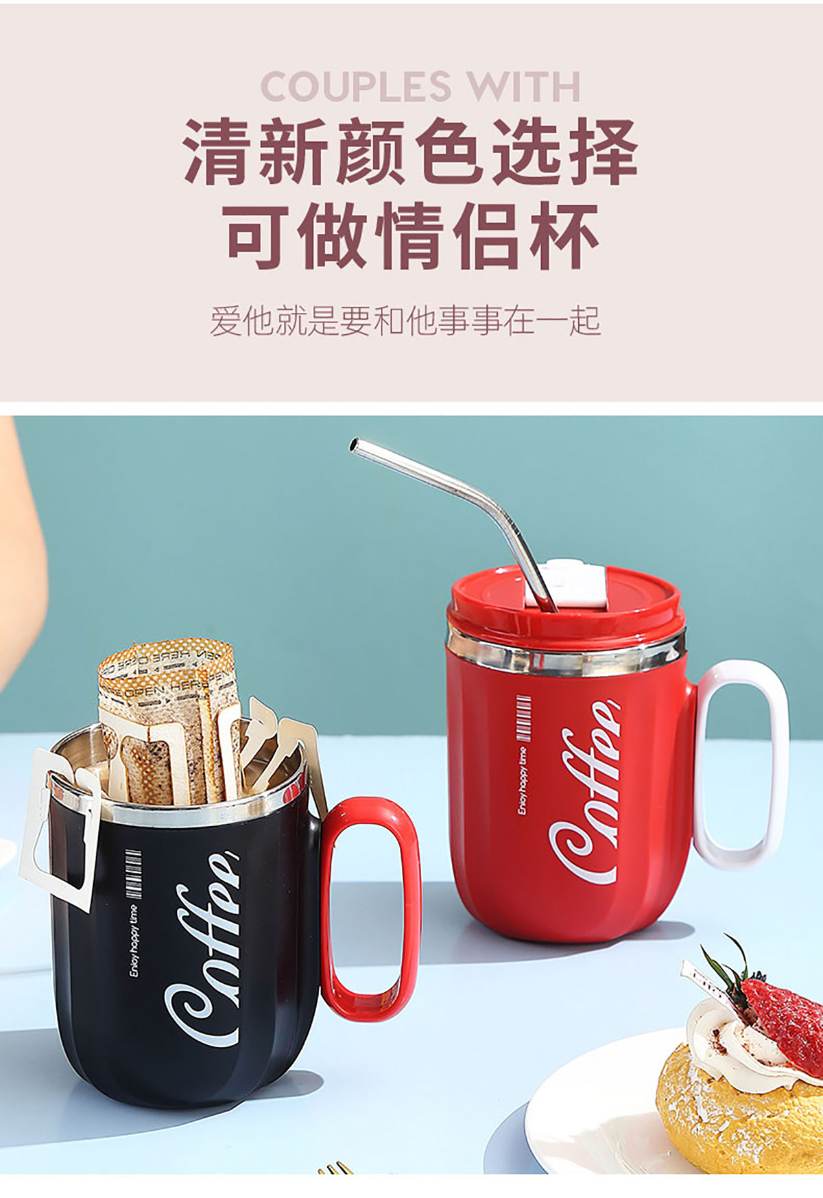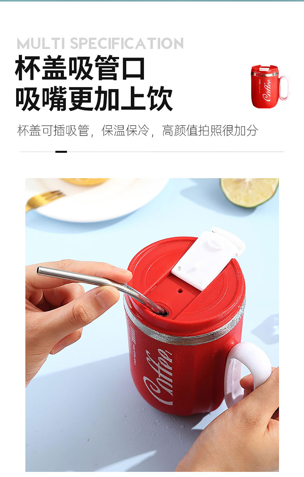 400ml咖啡304不銹鋼翻扣保溫杯(帶手柄)