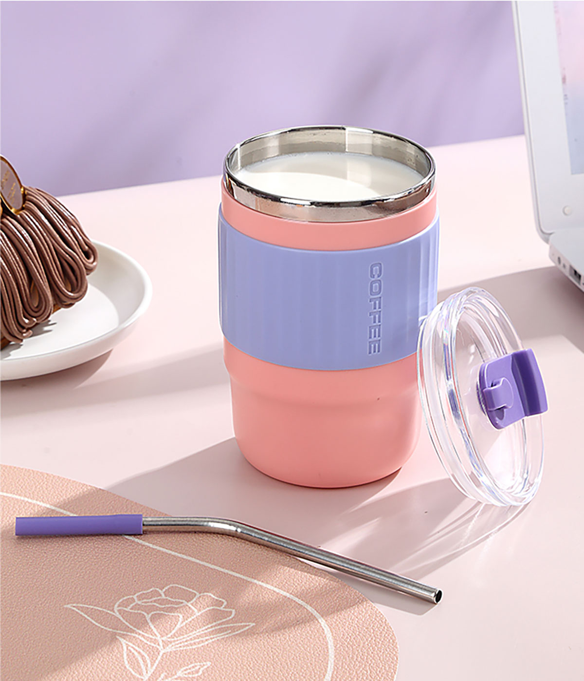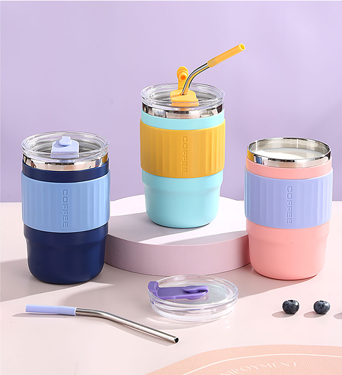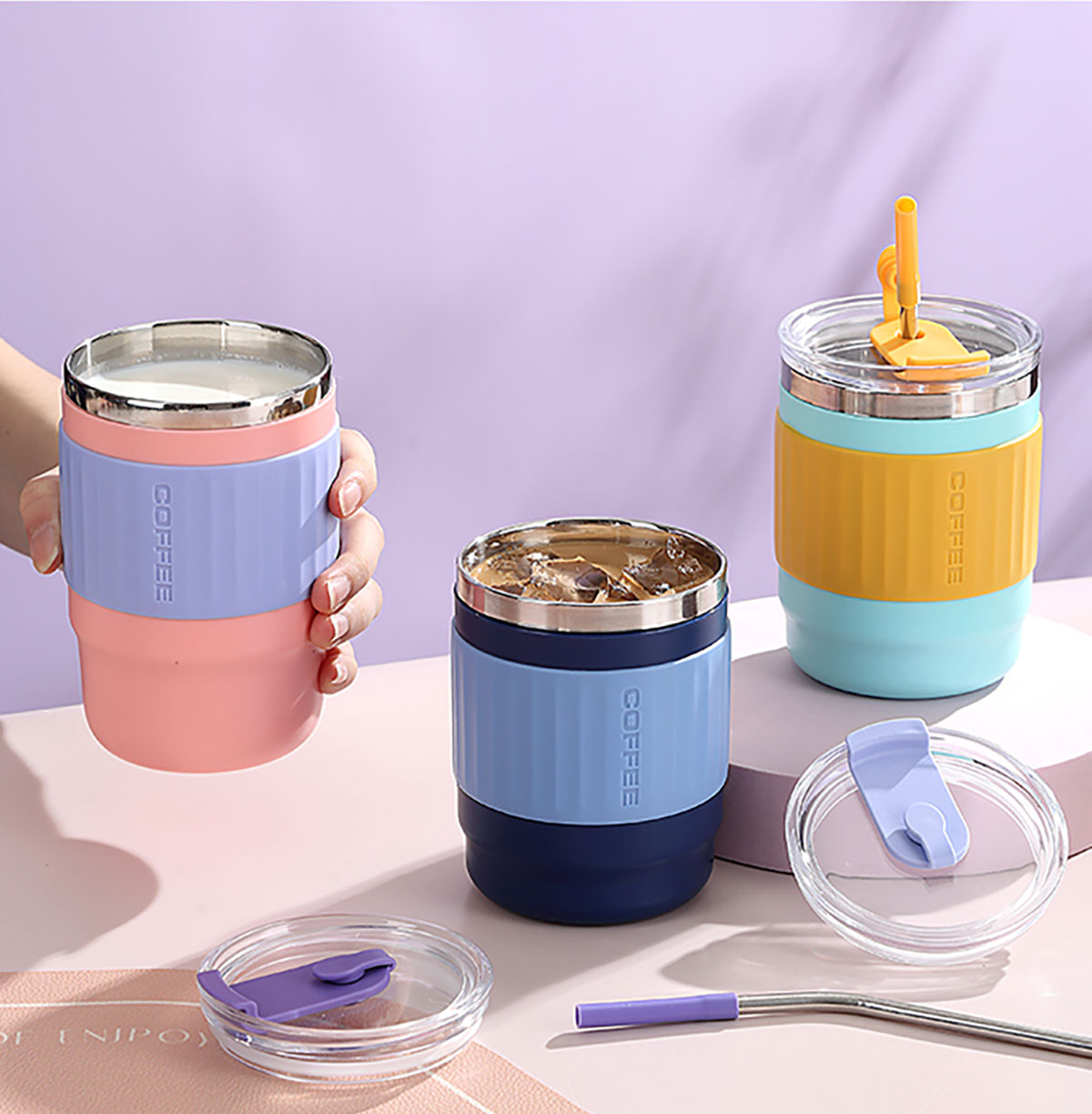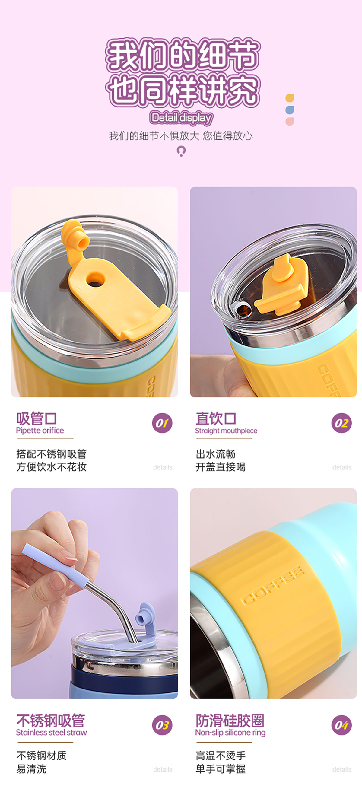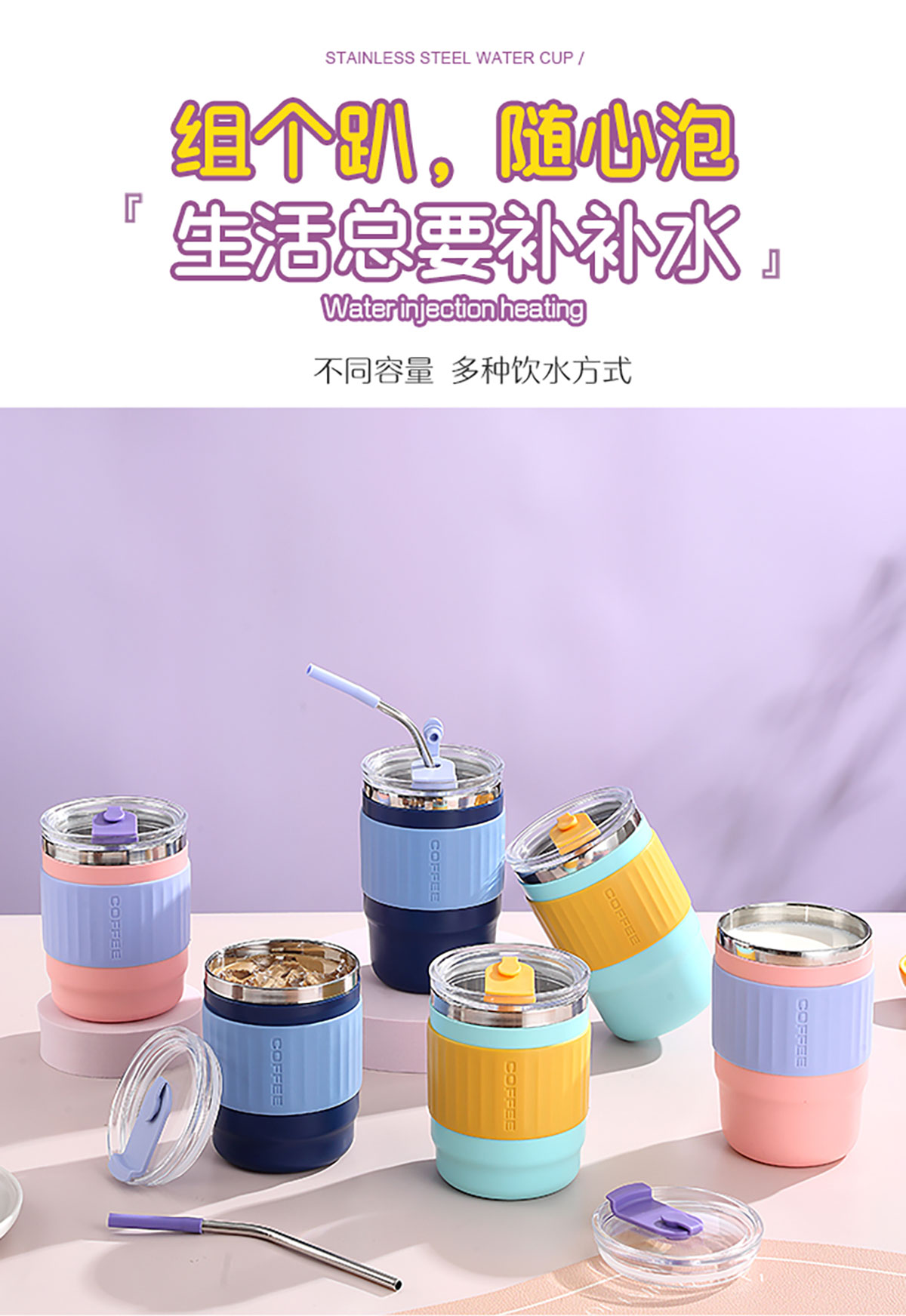 400ml/500ml時(shí)尚防燙雙飲水杯(配不銹鋼吸管)