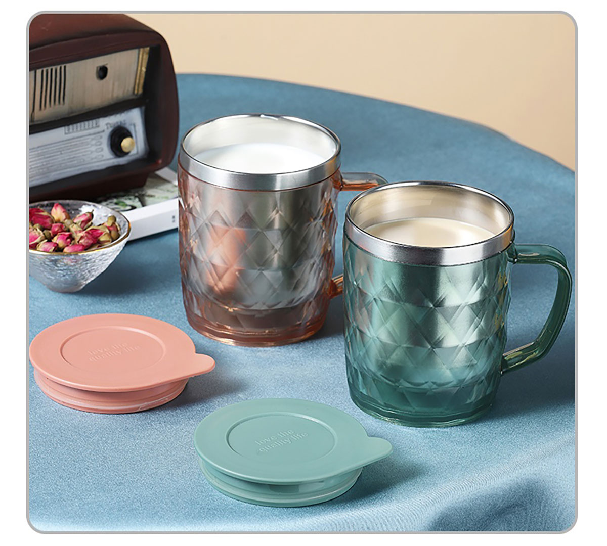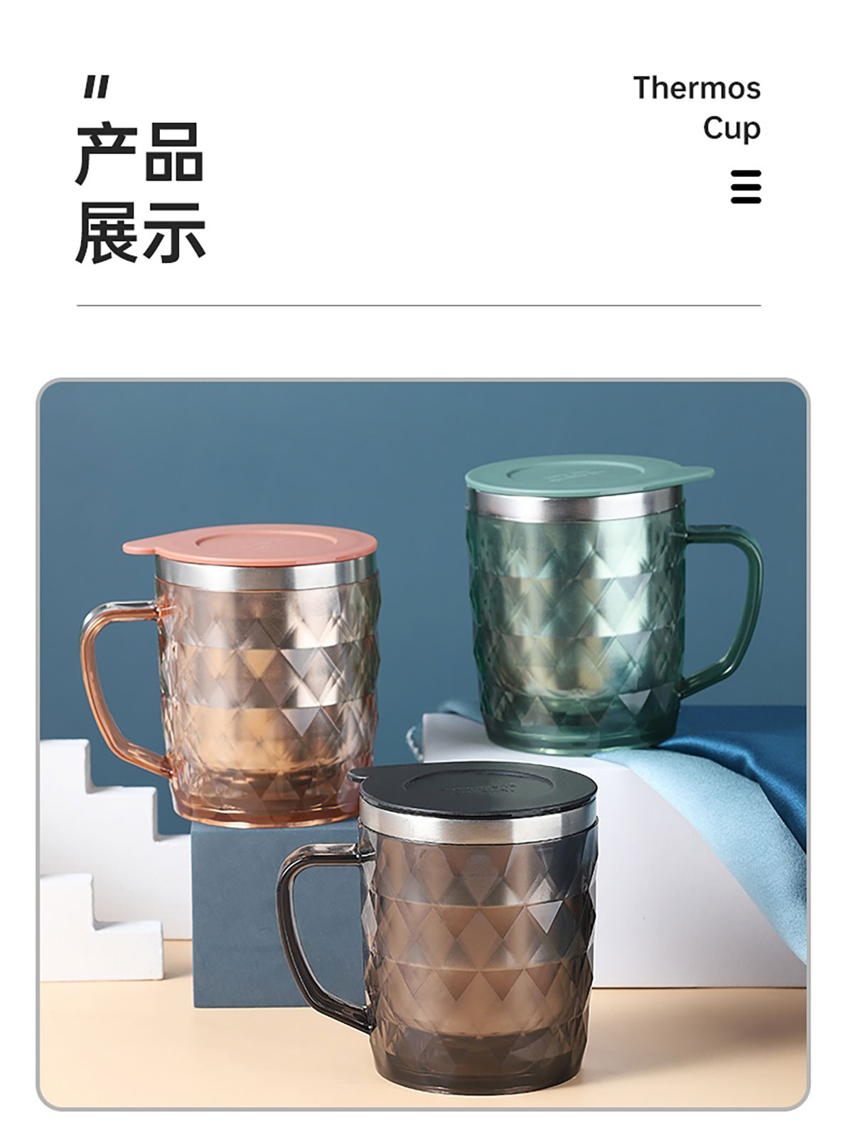 400ml菱形晶透保溫水杯
