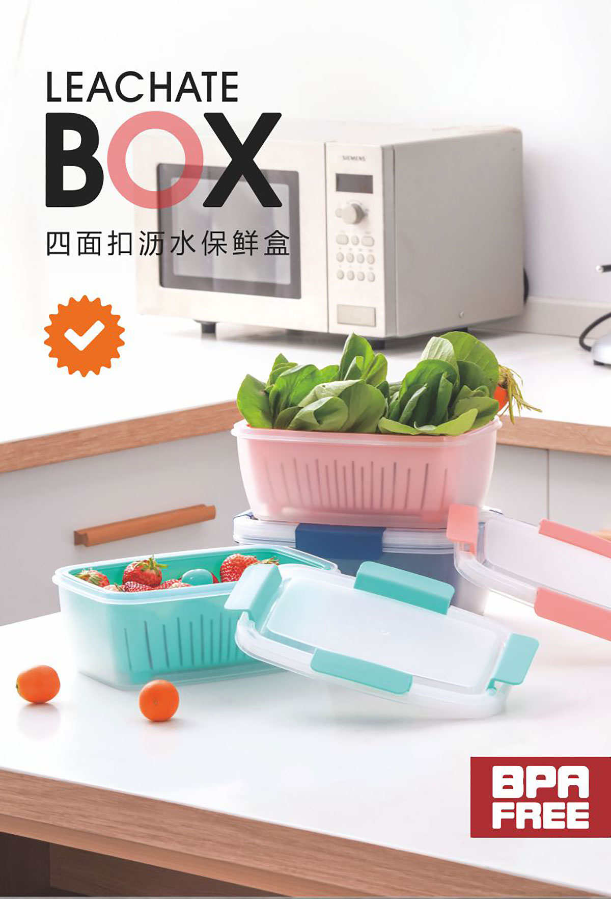 四面扣瀝水保鮮盒長方形2L  22年新色