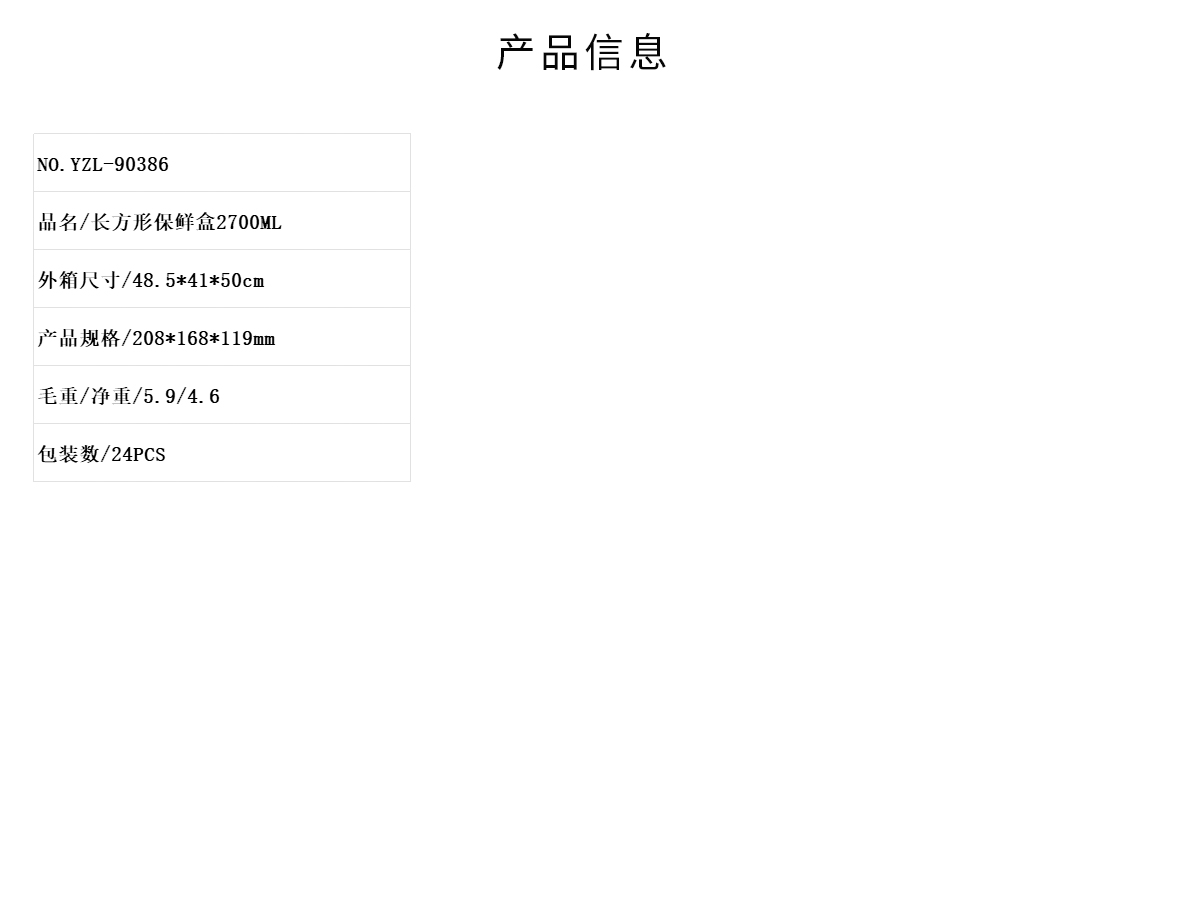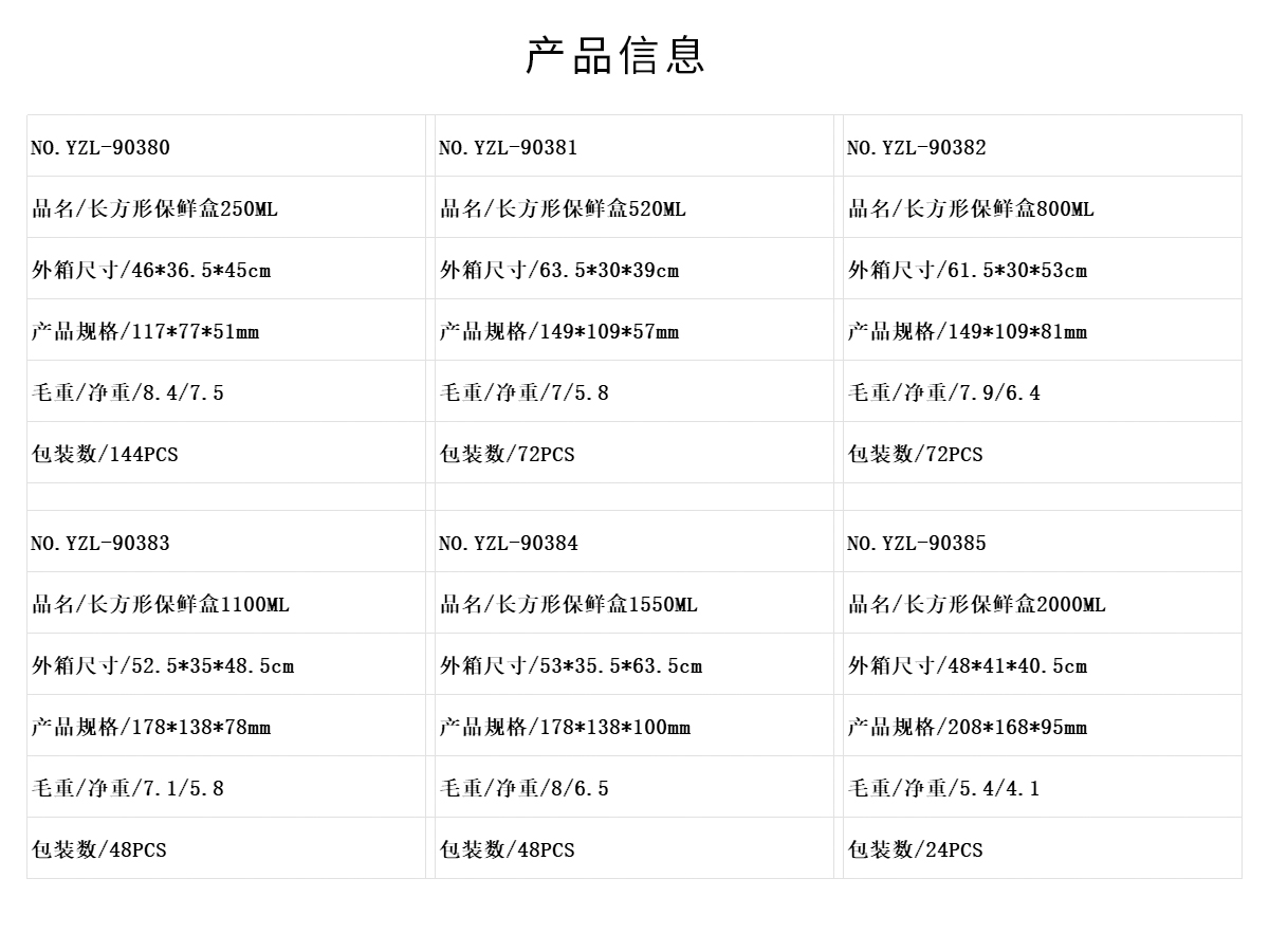 長(zhǎng)方形保鮮盒250ML/520ML/800ML/1100ML/1550ML/2000ML/2700ML