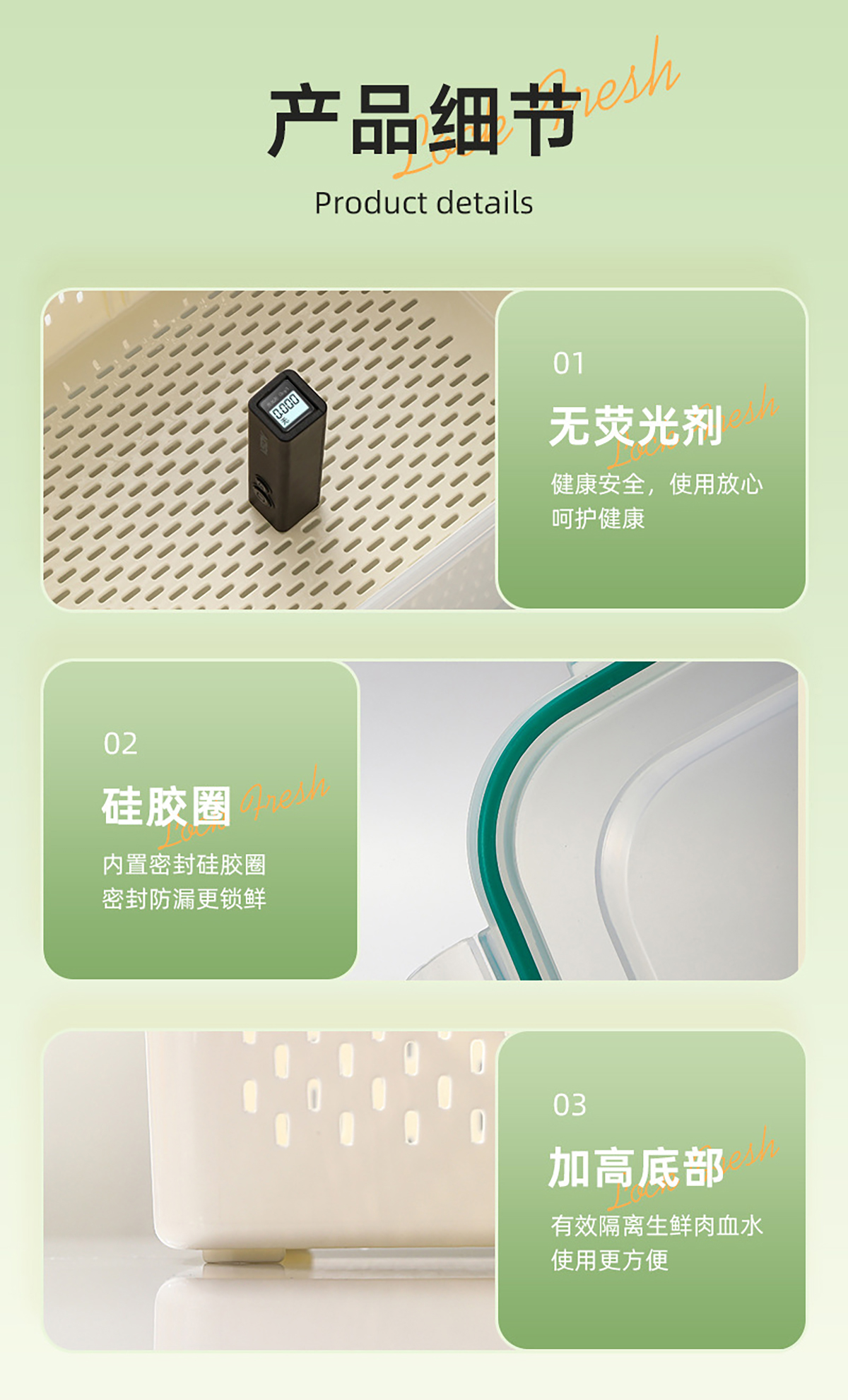 三件套/四件套/五件套手提密封分格瀝水保鮮盒