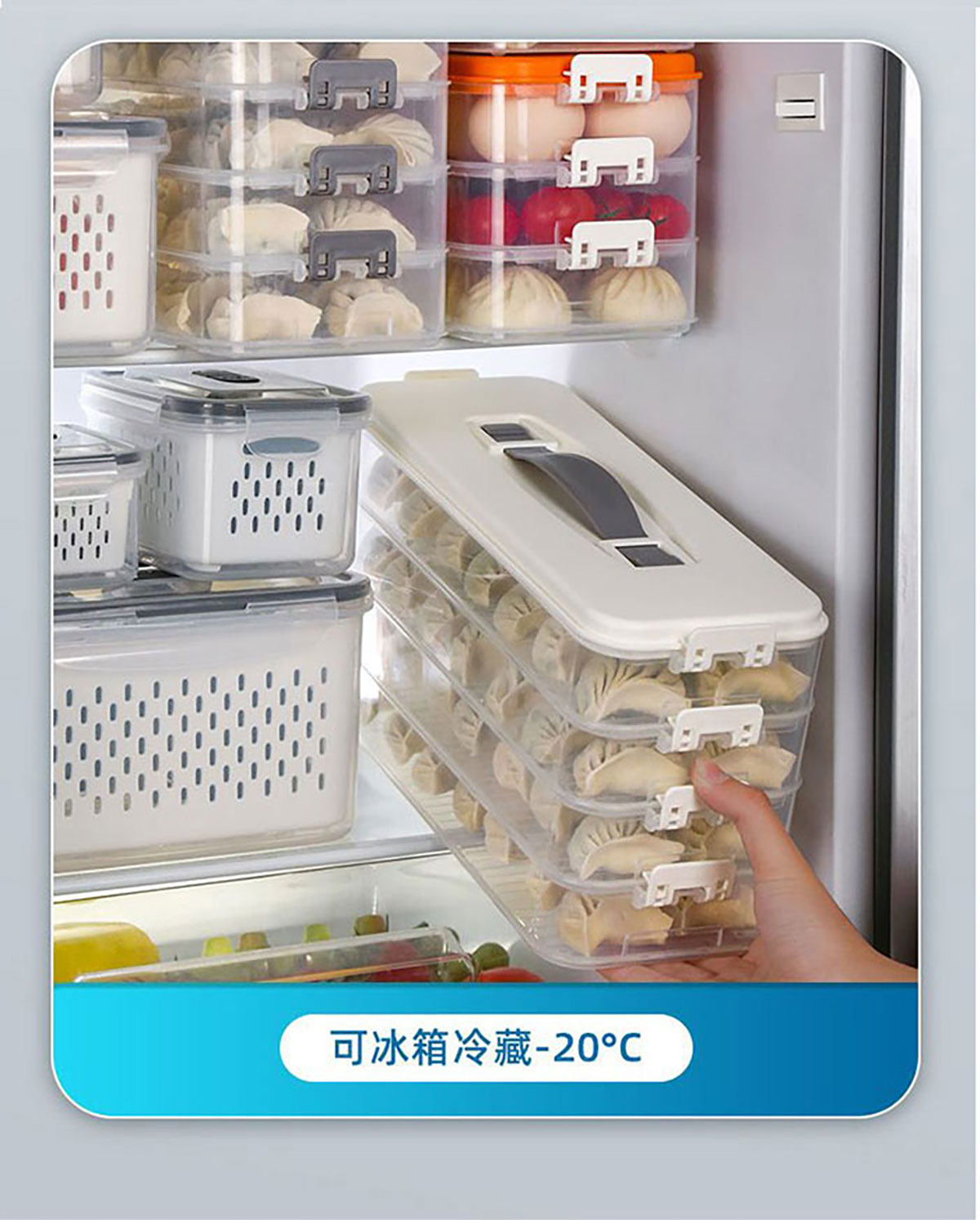 簡(jiǎn)系手提餃子收納盒(單層/2層/3層/4層/5層)