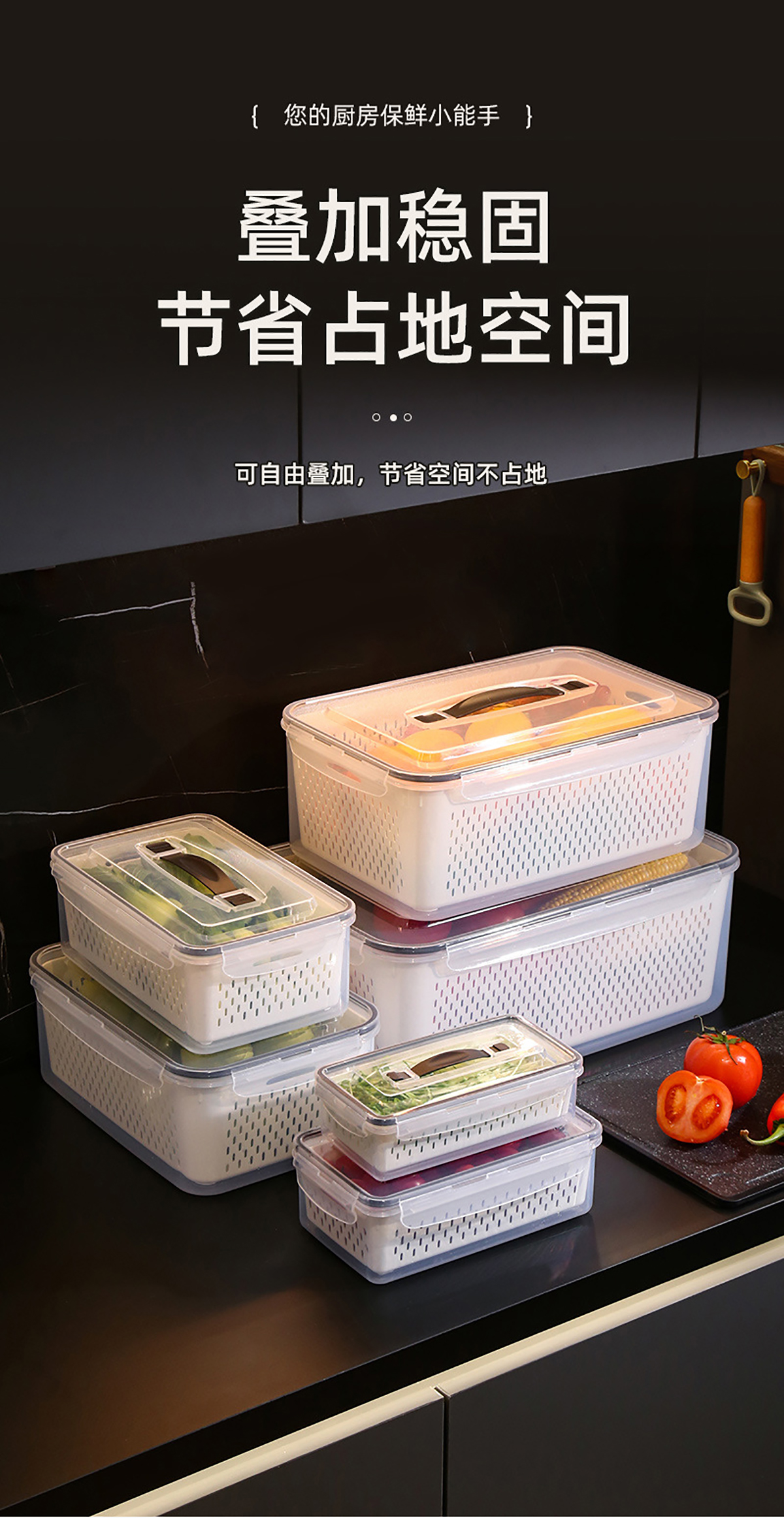 手提密封瀝水保鮮盒(800ml/1.7L/3.4L/6.0L/10.5L/16.5L)