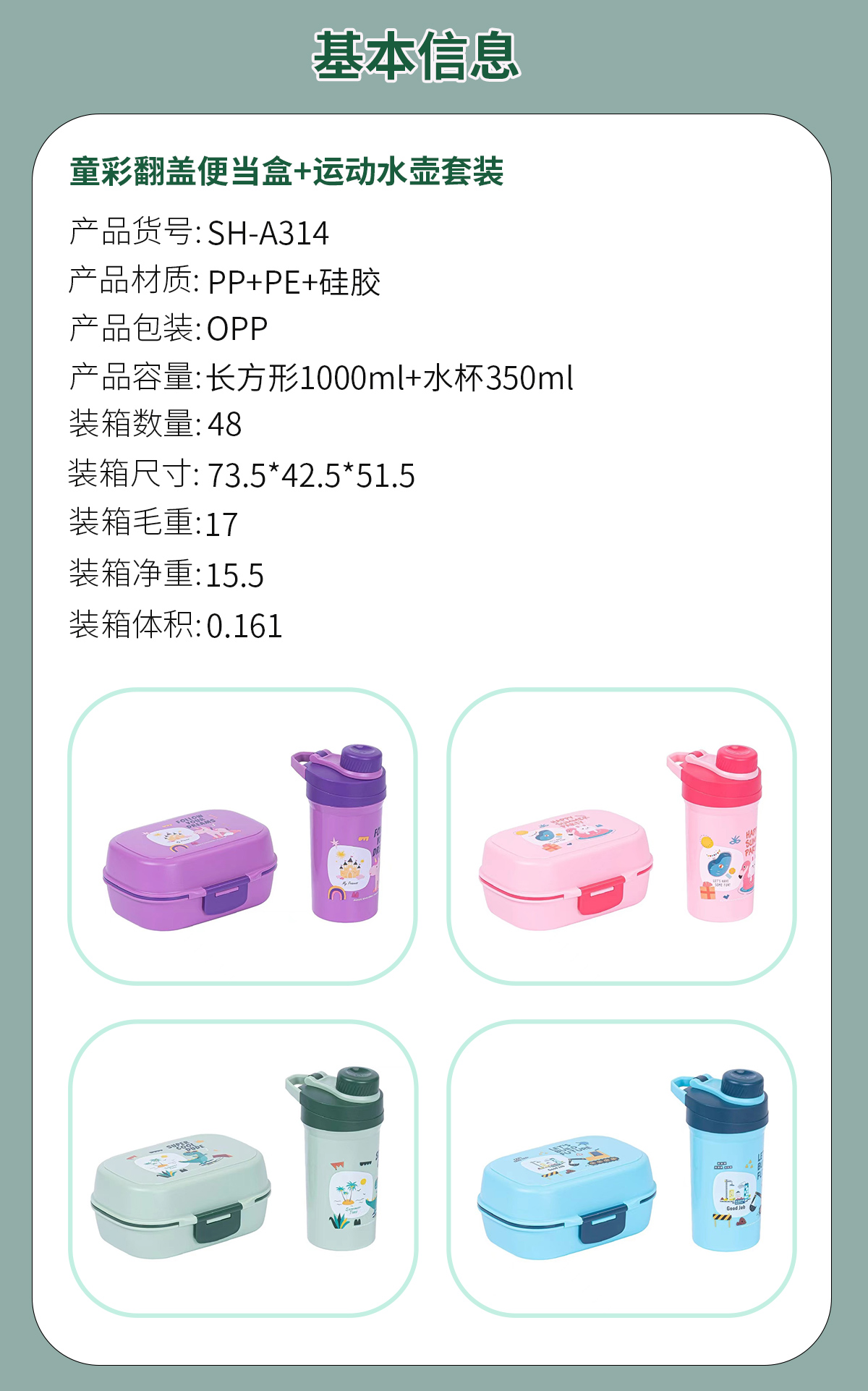 SH-A314:長方形1000ml+水杯350ml