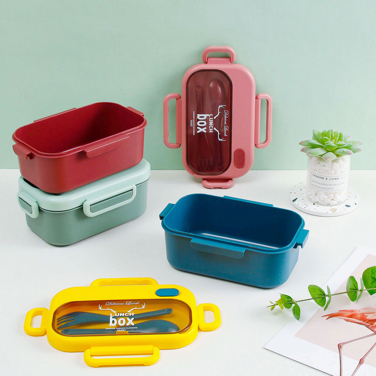 品悅長方單層密封飯盒(1000ml)+圓形/八角隨行杯(500ml)