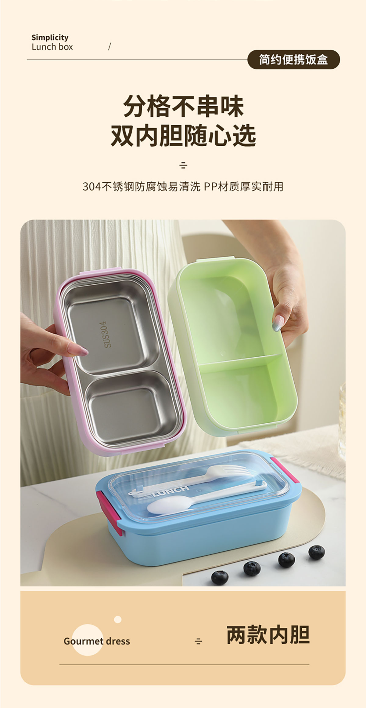 日式便當(dāng)盒PP款二格870ml/不銹鋼款一格600ml/二格500ml