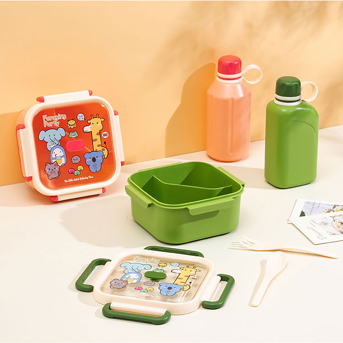 尚趣正方單層分格飯盒(1000ml)/+圓形/方形運(yùn)動水壺(500ml)